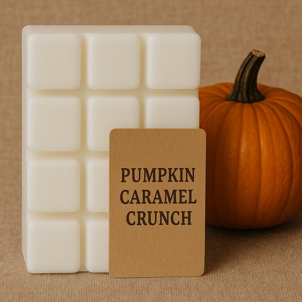 Pumpkin Caramel Crunch: Step into the warmth of harvest season with this rich, farmhouse-inspired fragrance. It opens with creamy butter and a bright twist of orange peel, then melts into layers of golden caramel, maple syrup, and velvety pumpkin. A finishing touch of roasted pecans adds a rustic, nutty sweetness that lingers like fresh-baked comfort straight from the farm kitchen. Cozy, indulgent, and luxuriously crafted — the perfect scent to bring autumn home.