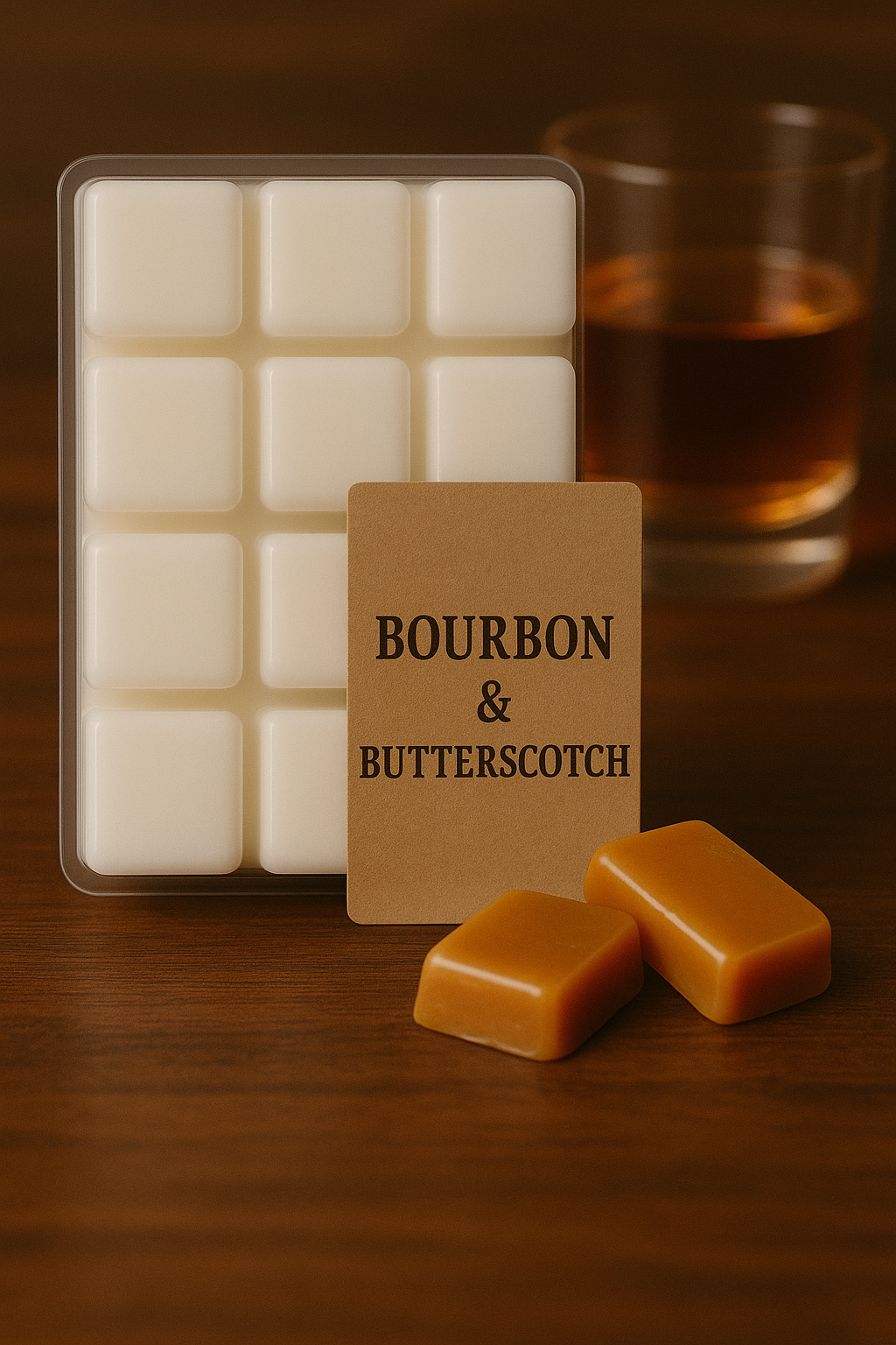 Butterscotch & Bourbon: Decadent and warm, this fragrance opens with a hint of peppercorn and spiced cardamom before unfolding into a heart of sticky-sweet butterscotch and golden brown sugar. At the base, aged bourbon mingles with smoky patchouli and rich oak, creating a smooth, boozy depth. Rich, indulgent, and irresistibly warm — a fragrance that feels like a glass of fine bourbon paired with homemade confections.