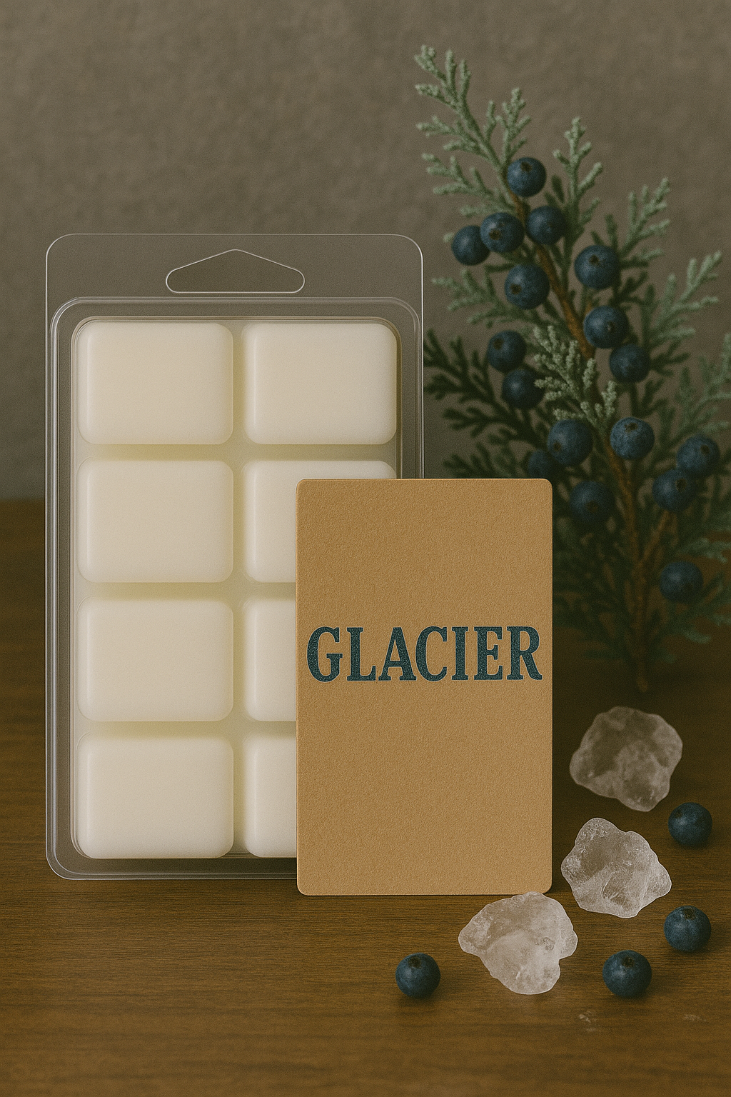 Glacier: Features a refreshing blend of cooling camphor, airy ozone, and subtle hints of citrus. These invigorating scents are complemented by deep red berry and woody pine notes