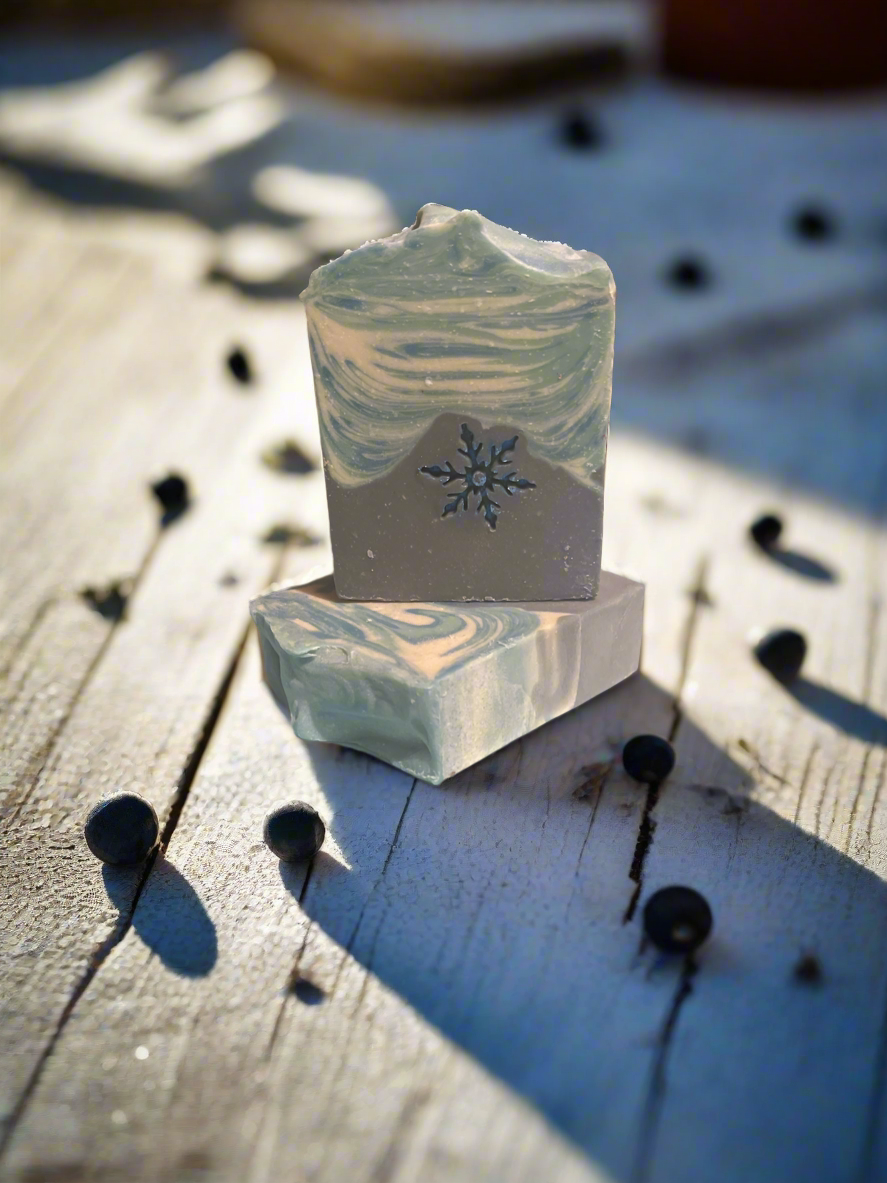 Crafted with nourishing goat milk, Glacier soap features a refreshing blend of cooling camphor, airy ozone, and subtle hints of citrus. These invigorating scents are complemented by deep red berry and woody pine notes, creating a complex masculine leaning fragrance.