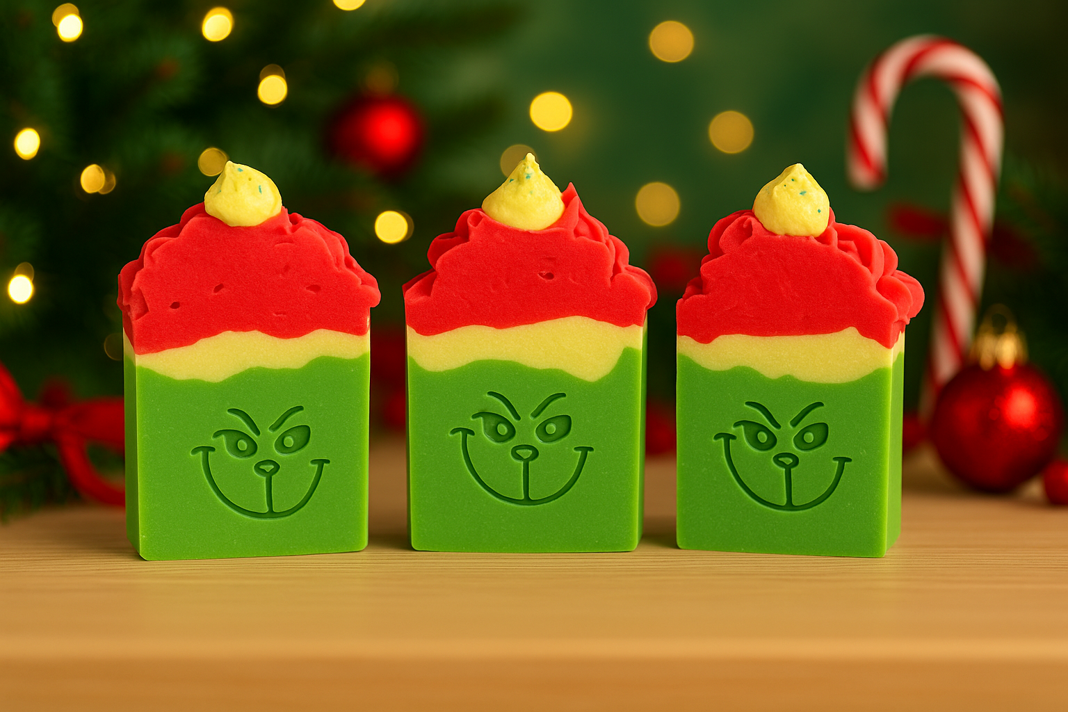 πŸŽ„βœ¨ Bring some holiday cheer (and a little mischief πŸ˜‰) to your soap collection with our Mr. Grouch Christmas Soap!